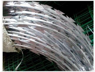 2、框架Y型柱刺絲滾籠:包含Y型立柱,框架網片,刀片刺絲滾籠。這種樣式給網片加上框架,是網片的抵擊強度大大增強,同時造價也有所上漲,運輸費用也油酸上漲。安裝也是很簡單快捷的,安裝場地的適應性比雙邊絲Y型柱護欄網略低。